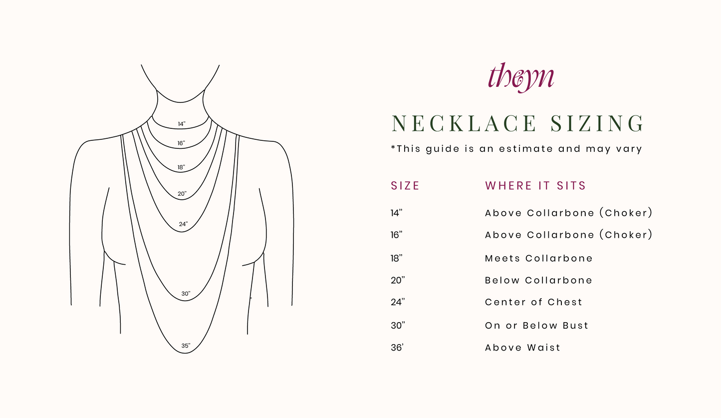 Please refer to the necklace length guide to estimate where the necklace will lay on you.
