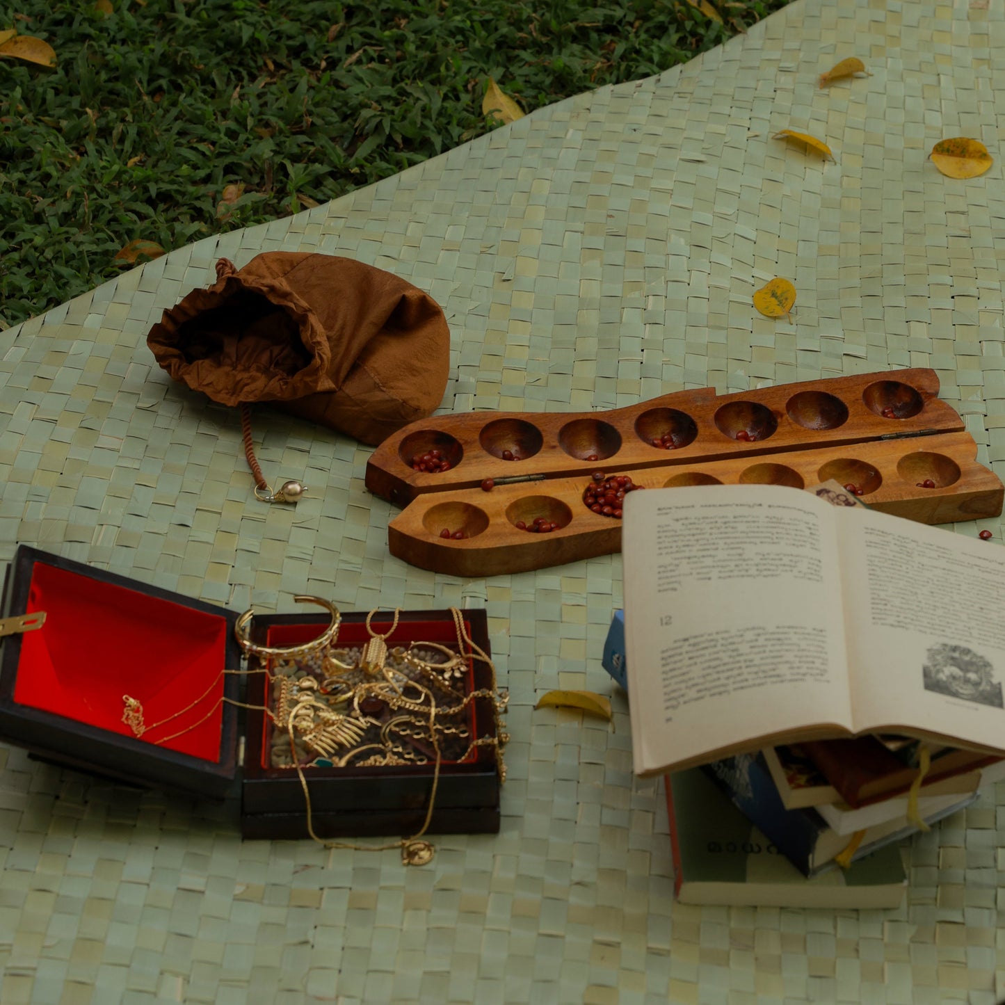 Crafted in-house, each piece is born from memory, shaped by culture and designed to carry stories that weave the past into your present. Every piece is designed to hold a story: the Palakka leaves that once promised protection, the braided textures of coconut fronds plaited in play, the gleam of manjadi kuru seeds tucked safely away.