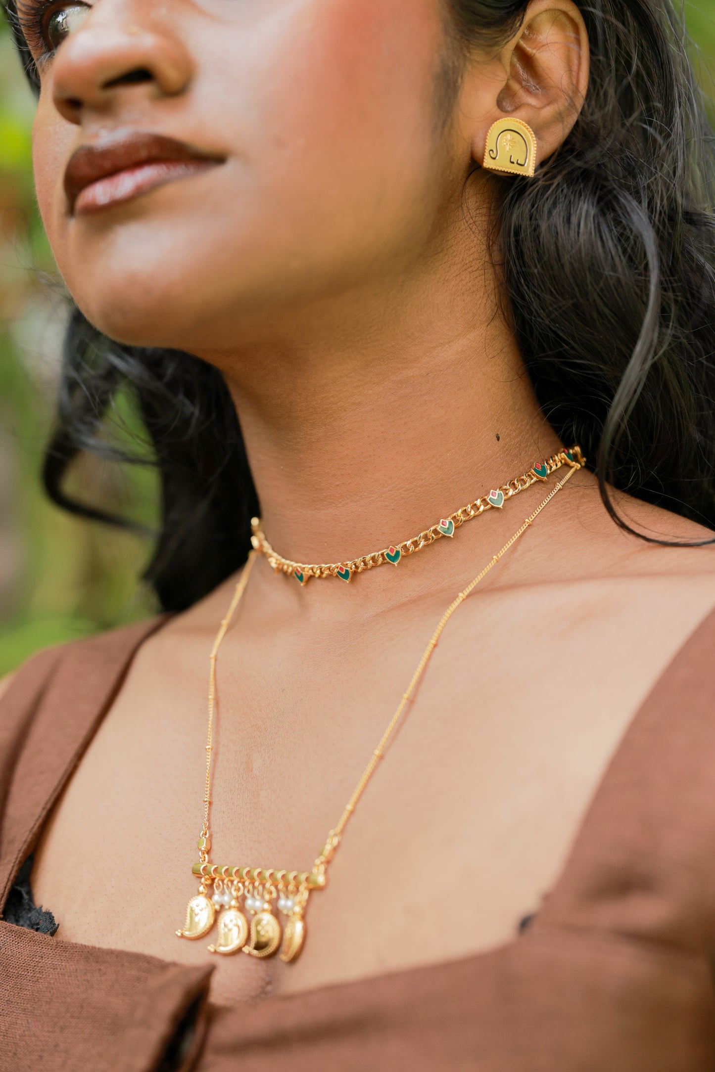 The Manga motif is among the most recognisable in Indian jewellery, often in traditional long necklaces and temple pieces. Its curvy, teardrop shape was inspired by the mango fruit, which has long symbolised love, fertility, prosperity, and abundance in Indian culture.